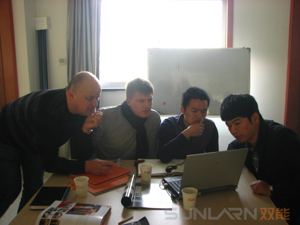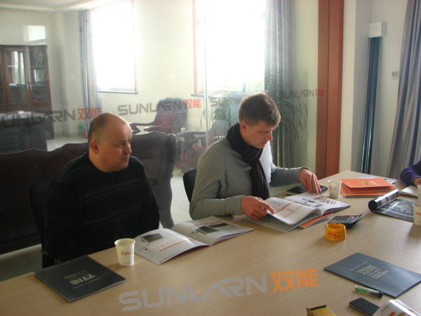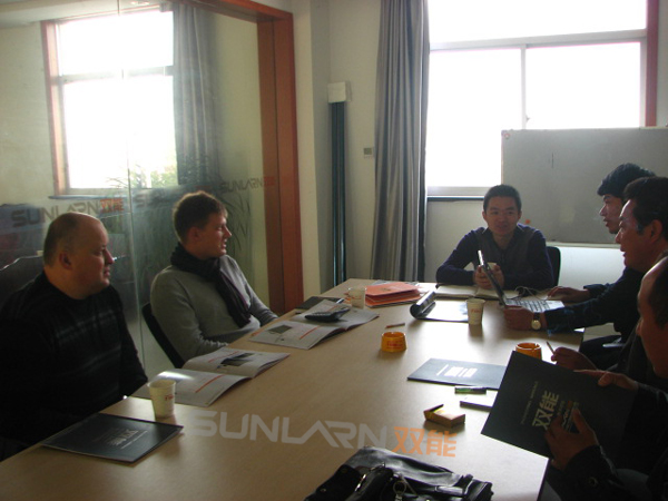 經過業內排行搜索、行業專家推薦以及周圍朋友介紹,Herry和Martin來到了雙能太陽能。通過參觀雙能生產車間、形象展示廳以及與雙能常務副總的溝通,Herry和Martin對雙能的實力有了深入地了解。Herry表示,“雙能太陽能就是我心目中理想的合作伙伴。”雙方洽談很愉快,簽訂了初步合作協議,隨即雙方就目前的項目進行了技術方案的探討。