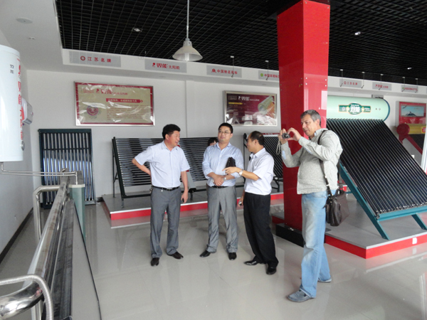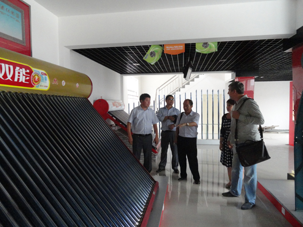 雙能公司董事長賁道祥親自接待,在公司會客室進行了親切會談。董事長對雙能公司的發展情況及產品做了詳細介紹。伊格力對雙能公司多元化的太陽能產品頗感興趣,尤其是太陽能供熱與采暖相結合的系統,伊格力表示這將在黑山共和國大有市場。之后,董事長帶領客商參觀了雙能產品展示廳及生產車間。