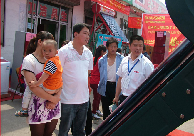活動當天,廣場上擺放了一排排雙能太陽能樣機,吸引了馬路上很多行人駐足觀望,山西大區經理對智動•鋒范太陽能詳細的講解及精彩的現場演示,更是賺足了大家的眼球,很多意欲購買其他品牌太陽能的用戶紛紛搶訂購了智動•鋒范太陽能。