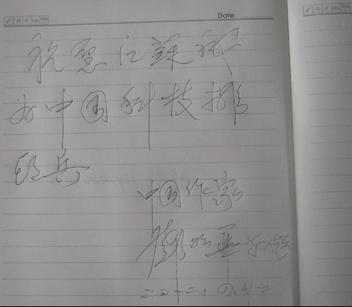 鄧?yán)犀F(xiàn)場(chǎng)慷慨題詞并與雙能太陽(yáng)能工作人員合影留念。對(duì)江蘇科技及雙能太陽(yáng)能給予極大厚望。