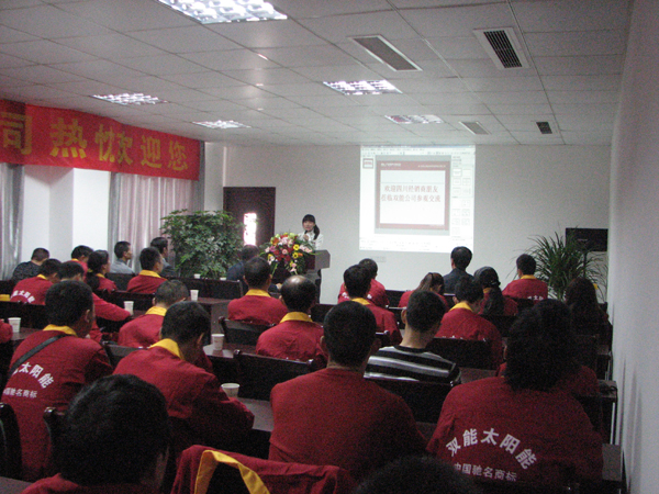 10月6日,江蘇雙能太陽能有限公司(以下簡稱“雙能”)上下一片熱烈祥和的氣氛,所有員工都熱情洋溢,朝氣蓬勃,因為今天對雙能來說是一個不同尋常的日子。四川省40多位優(yōu)秀經(jīng)銷商組團來到雙能總部參觀、考察,同時雙能還組織了“雙飛加五日游”活動,讓經(jīng)銷商們在參觀、考察、學(xué)習(xí)之余暢游華東,感受華東城市風(fēng)貌。這是雙能繼8月31號在北京舉行4D變頻太陽能科技鑒定會暨新品發(fā)布會后又一振奮人心的大型活動。