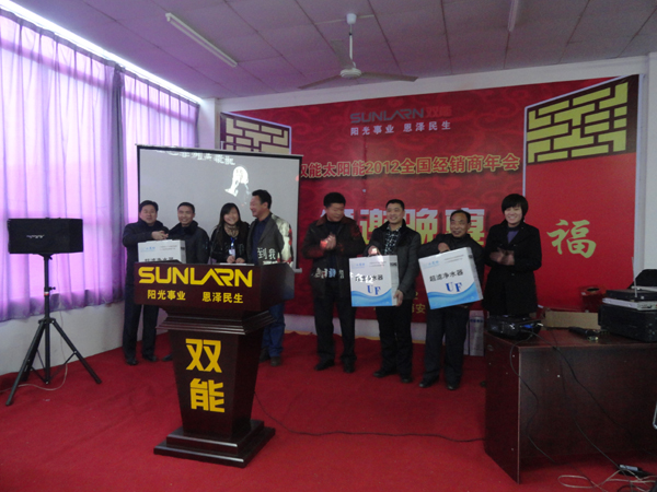 2月4日,雙能太陽能在公司酒店召開2012年度員工表彰大會,旨在對辛苦勞作在各條戰線的員工進行褒獎與犒勞。公司高管、市場銷售人員、行政辦公人員及生產一線的工人參加了會議。