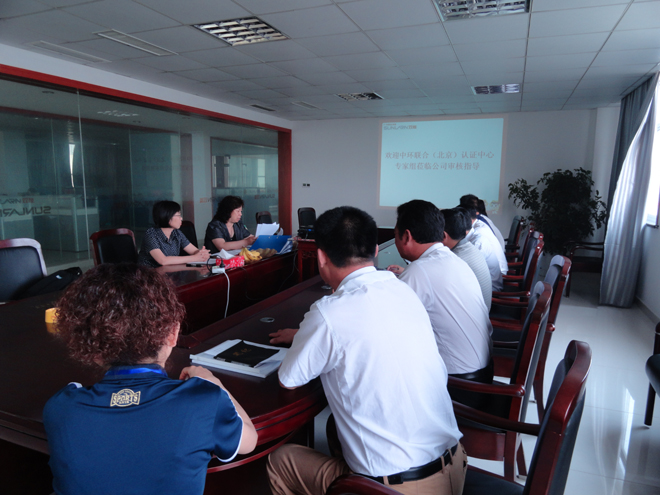10月12日,雙能太陽能迎來了來自中環(huán)聯(lián)合(北京)認證中心的專家組。專家組此行對雙能公司的質(zhì)量管理體系、環(huán)境管理體系以及中國環(huán)境標志產(chǎn)品進行了監(jiān)督審核。雙能太陽能總經(jīng)理賁道發(fā)及各相關(guān)部門負責人參加了首次會議,并在為期兩天的審查過程中給予了充分的配合。10月13日,召開末次會議,會上專家組鄭重宣布:雙能公司順利通過兩個體系與環(huán)標產(chǎn)品監(jiān)督審核。